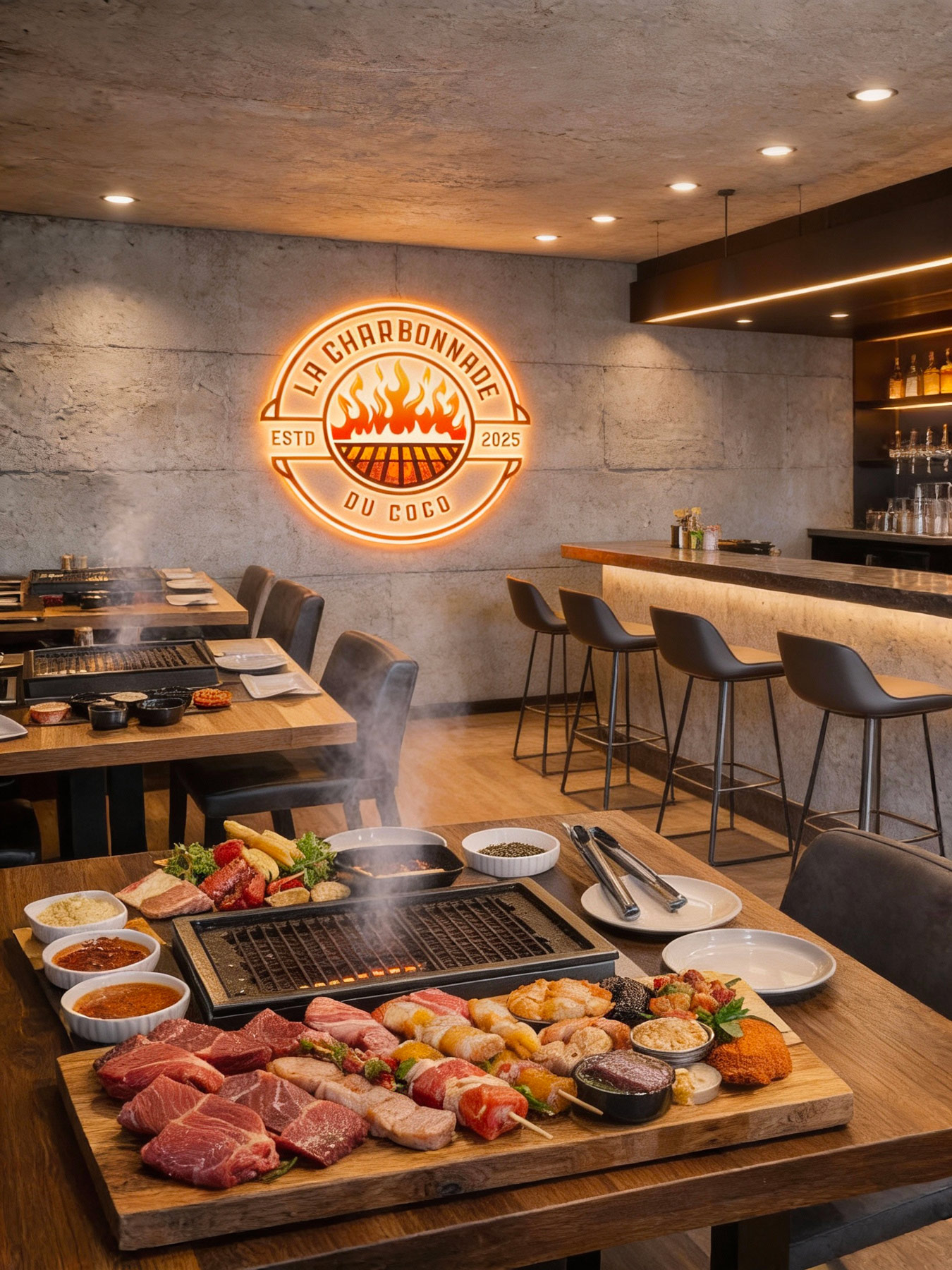 La Charbonnade du Coco, c’est avant tout une histoire de feu, de partage et de gourmandise. Nous proposons une cuisine sincère, inspirée des traditions conviviales, où charbonnades, fromages d’exception et viandes grillées se dégustent dans une ambiance chaleureuse.